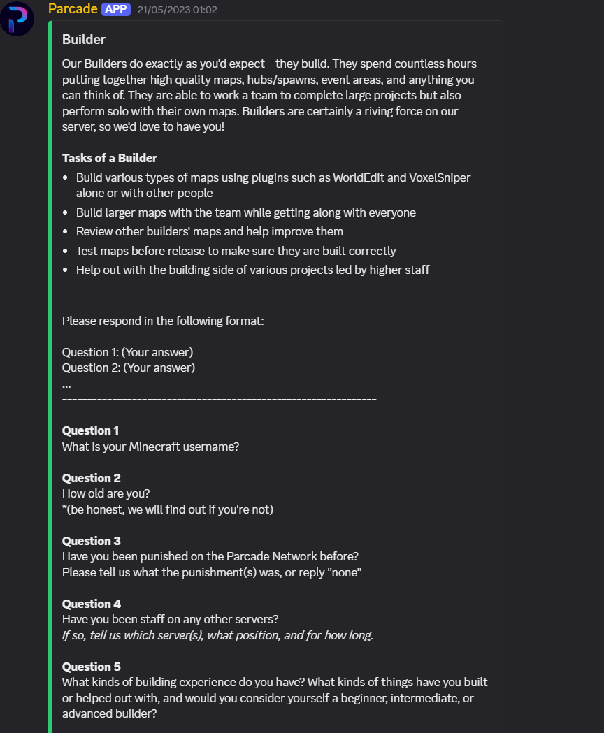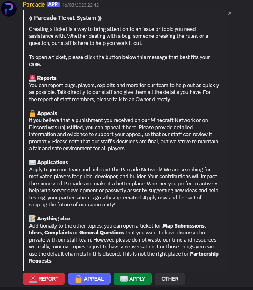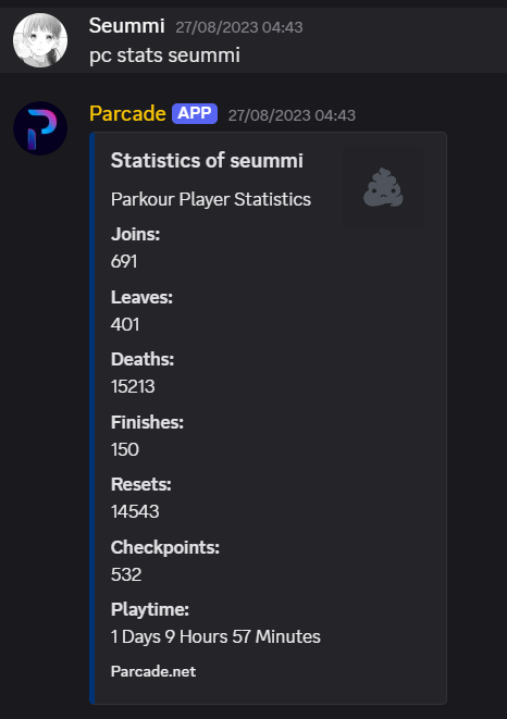 Der Parcade Bot war ein eigens entwickelter Discord-Bot, der dazu diente, die Spielerstatistiken des Minecraft-Netzwerks Parcade flexibel und übersichtlich anzuzeigen. Spieler konnten auf dem offiziellen Discord-Server durch einfache Befehle ihre persönlichen Daten abrufen – darunter Spielzeit, Versuche, Niederlagen, gespielte Matches sowie ihre Platzierung in den Leaderboards. Darüber hinaus informierte der Bot zuverlässig darüber, ob das Netzwerk aktuell online ist, und erleichterte dem Team die Verwaltung von Ankündigungen und Mitteilungen.